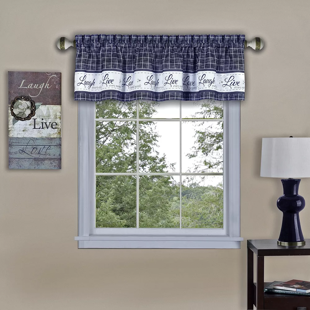 Inspire your inner designer with this beautifully designed Live, Love, Laugh window valance.