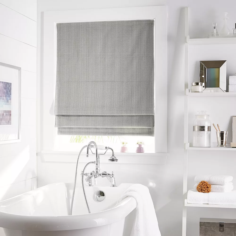 - Dress your windows with cordless Jolie Room Darkening Roman shades, beautifully fashioned for any room in your home. Presented in solid Grey or Linen, each woven shade is backed with foam, keeping your room warmer in the winter, and cooler in the summer.