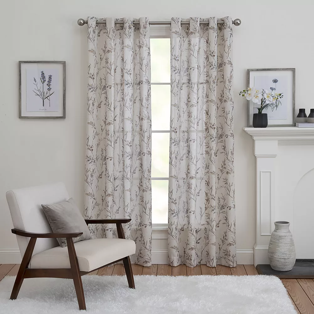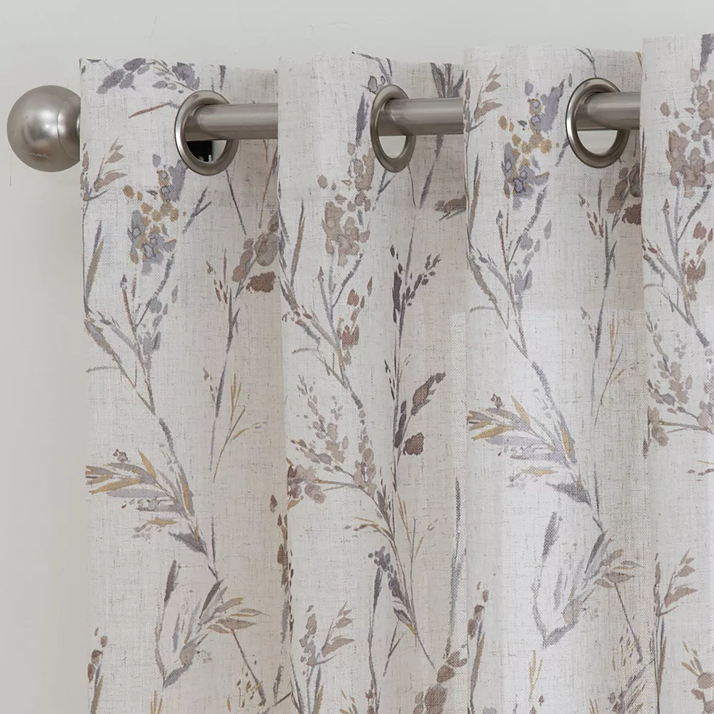 - The Abeil grommet top panel from Corona Curtain features a delicate botanical floral print on a specialty fabric with just a touch of linen.