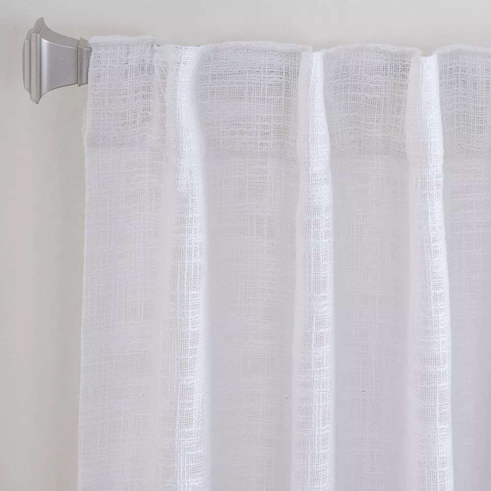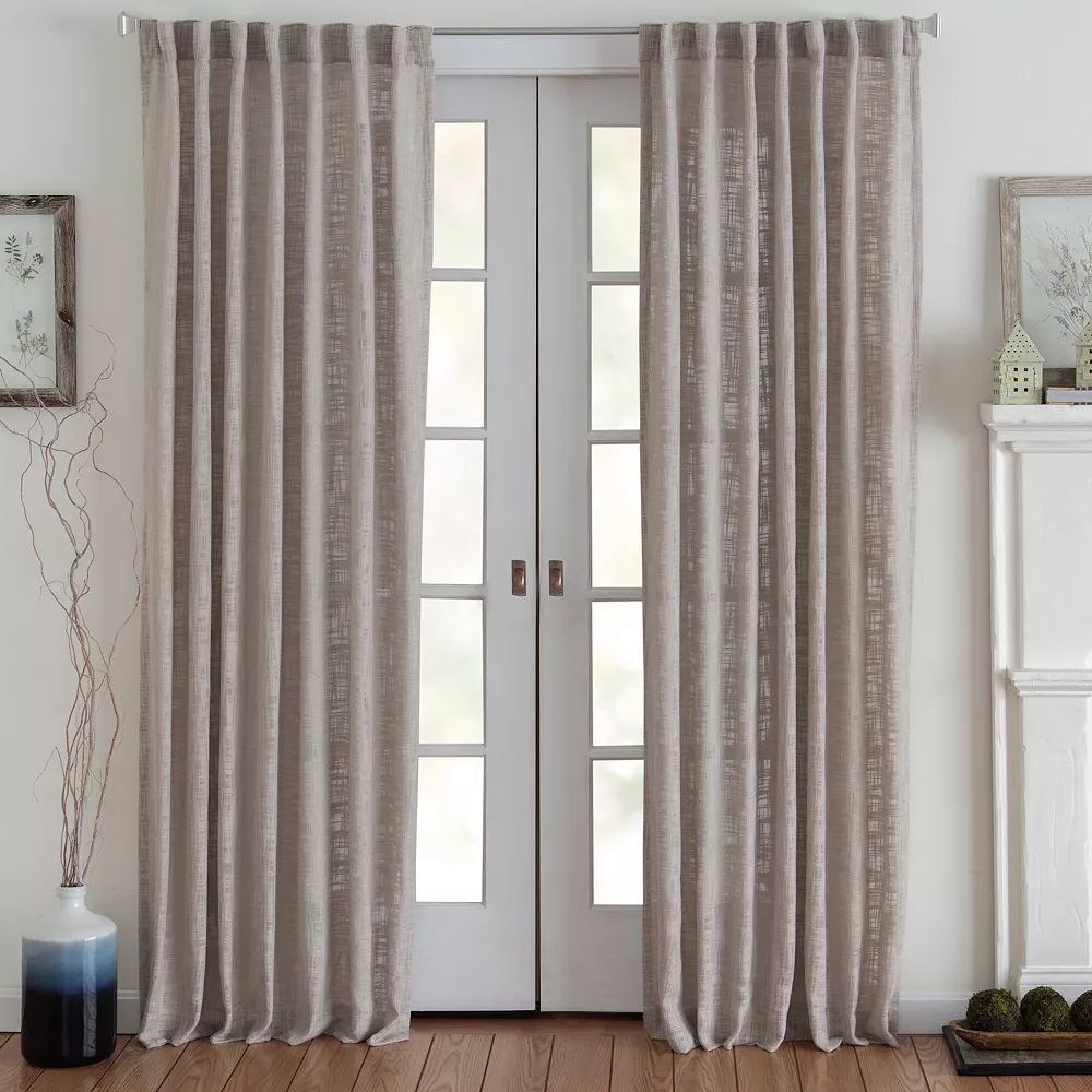 - The Eastman Solid window panel from Corona Curtain features a textured slubbed linen-look fabric design.