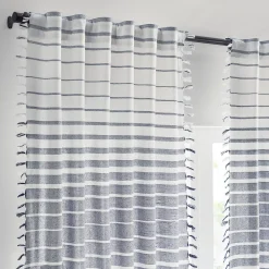 Mercantile Tavia Horizontal Stripes Rod Pocket Back Tab Sheer Window Curtain Panel