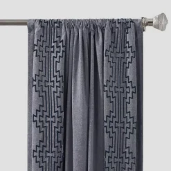 Archaeo Jigsaw Embroidery Linen Blend Rod Pocket Curtain Panel