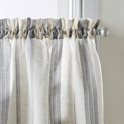 Clean Window Textured Slub Stripe Anti-Dust Linen Blend Sheer Cafe Curtain Pair