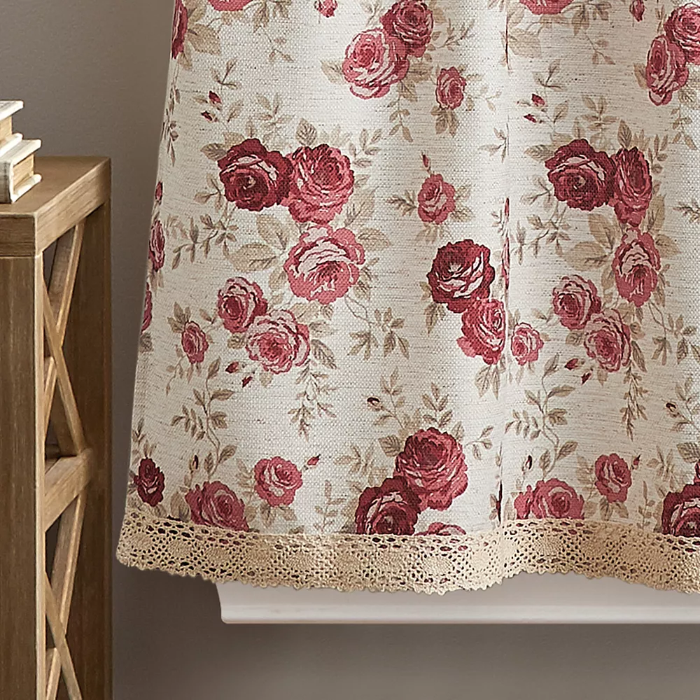 - Settle into country charm with the Curtainworks Antique Rose Tier pair. This cheerful set of two will add rosy hues to your space for an inviting look. The rose printed tiers are fashioned with a crochet hem for added interest and style. For a clean appearance hang this set by the rod pocket on a standard curtain rod.