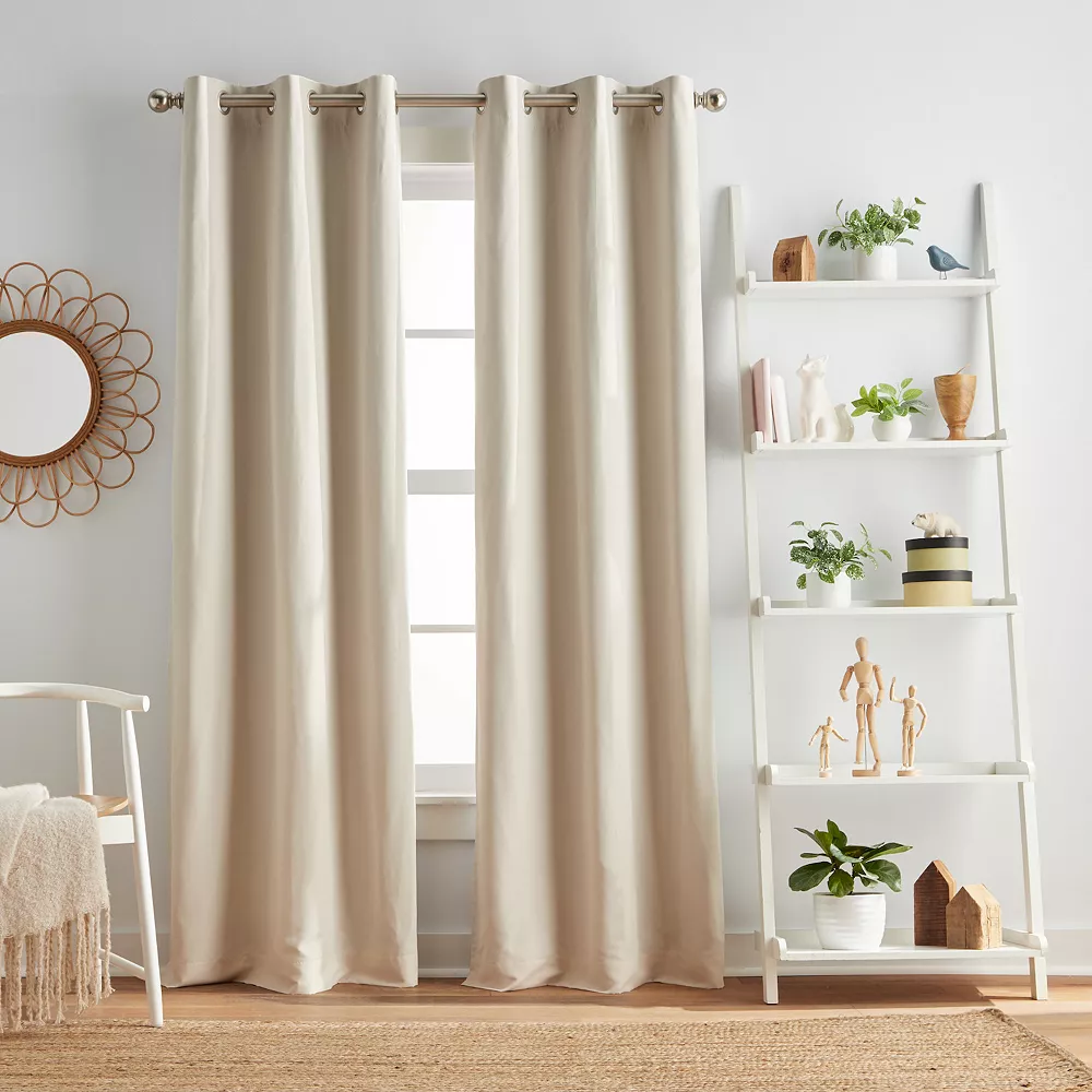 - Create a peaceful environment with the Dream Factory Harper curtain panel pair for your little one. This curtain set features Block- Light™ technology, a lightweight insulation layer that helps to keep out unwanted sources of light, noise, and drafts from entering your child’s room.