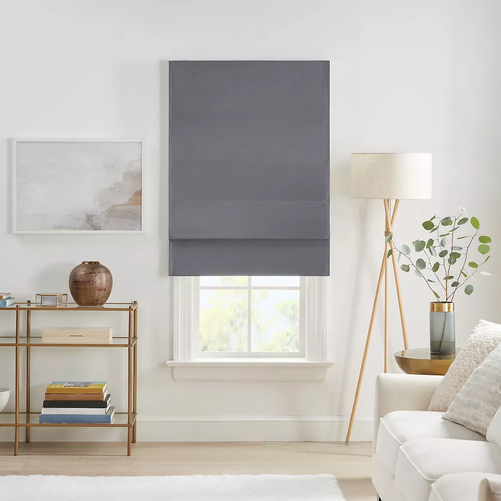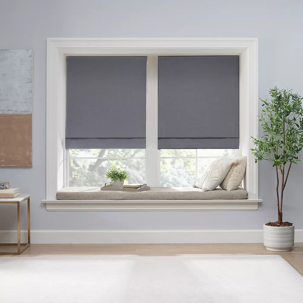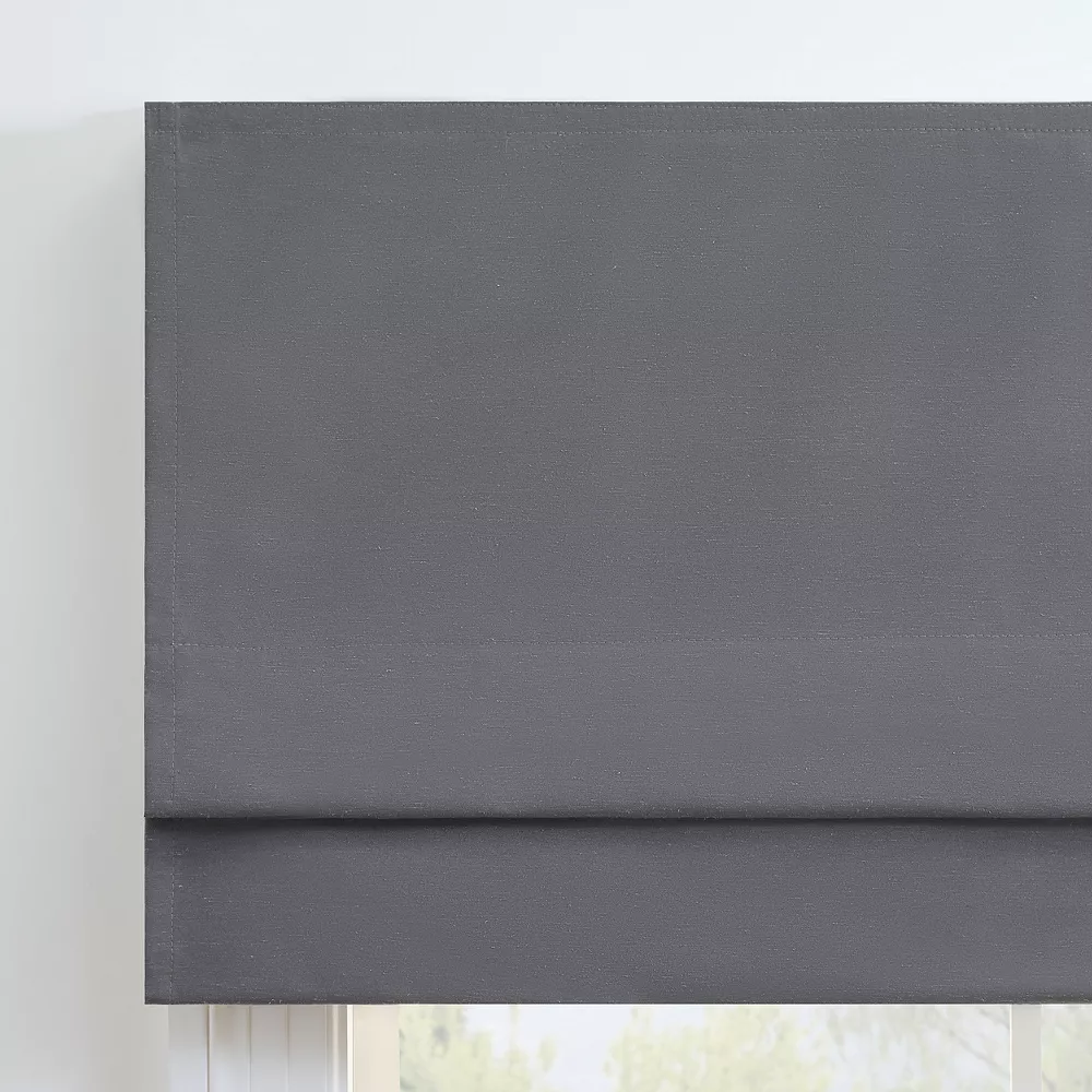 Redefine the look and feel of any space with this stylish eclipse Dillan Linen-Like Textured Solid 100% Total Blackout Cordless Roman Shade.
