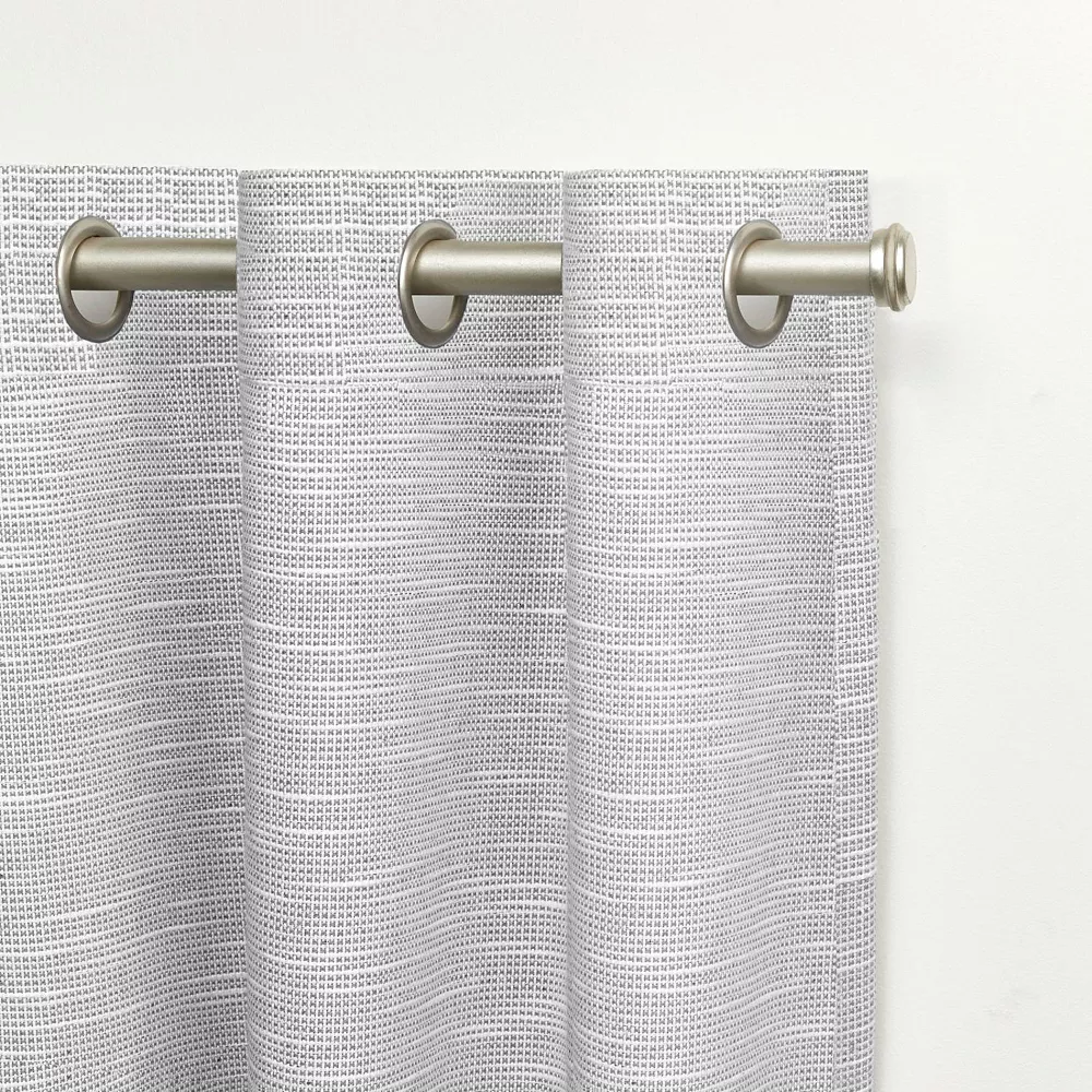 - These two drapes feature eight (8) brushed nickel (matte silver) grommets per curtain panel. Hang using your favorite curtain rod that measures up to 1.25″ in diameter.