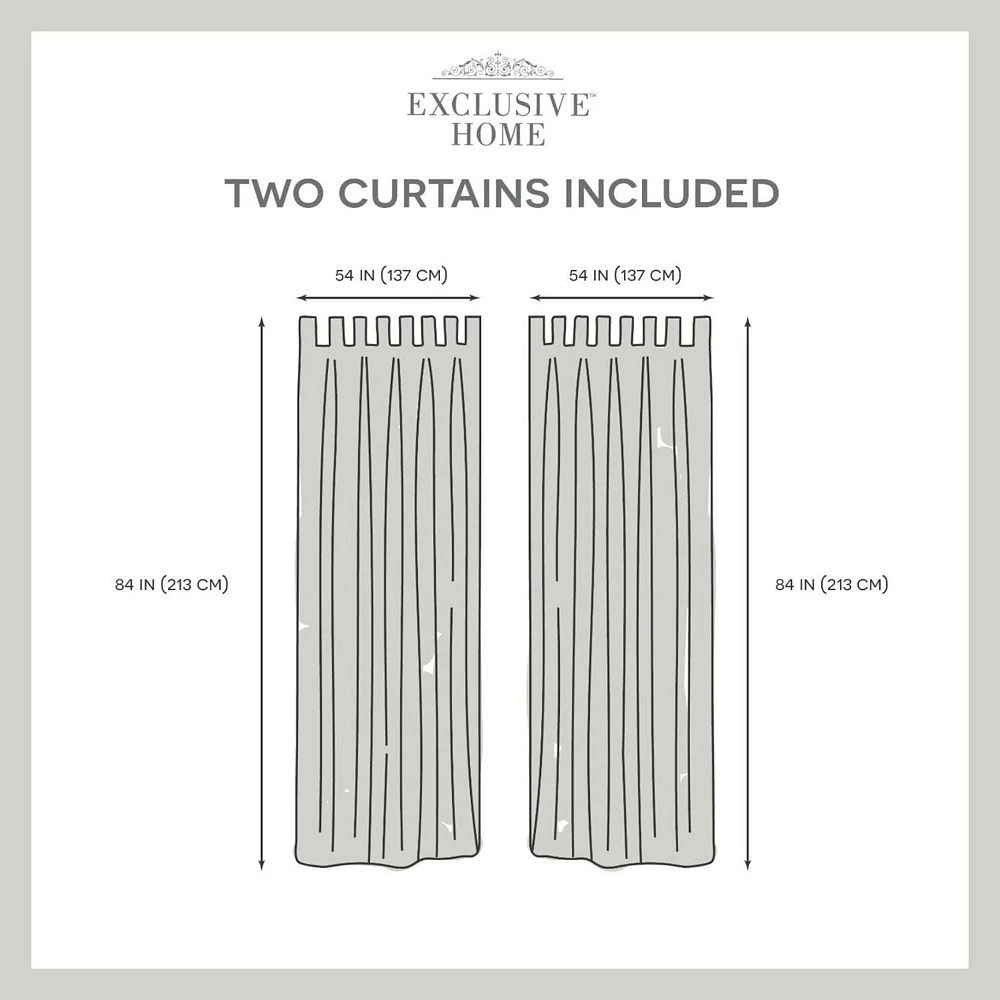 - Includes two (2) curtain panels, each measuring 54″W x 84″L