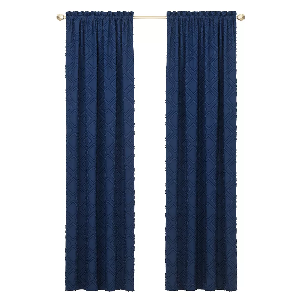 This modern geometric diamond clipped design makes for a great boho chic curtain. The raised fringe like details mixed with these rich colors create a chic look to any room. Ready for immediate use. Machine washable and dry able. Rod pocket header.