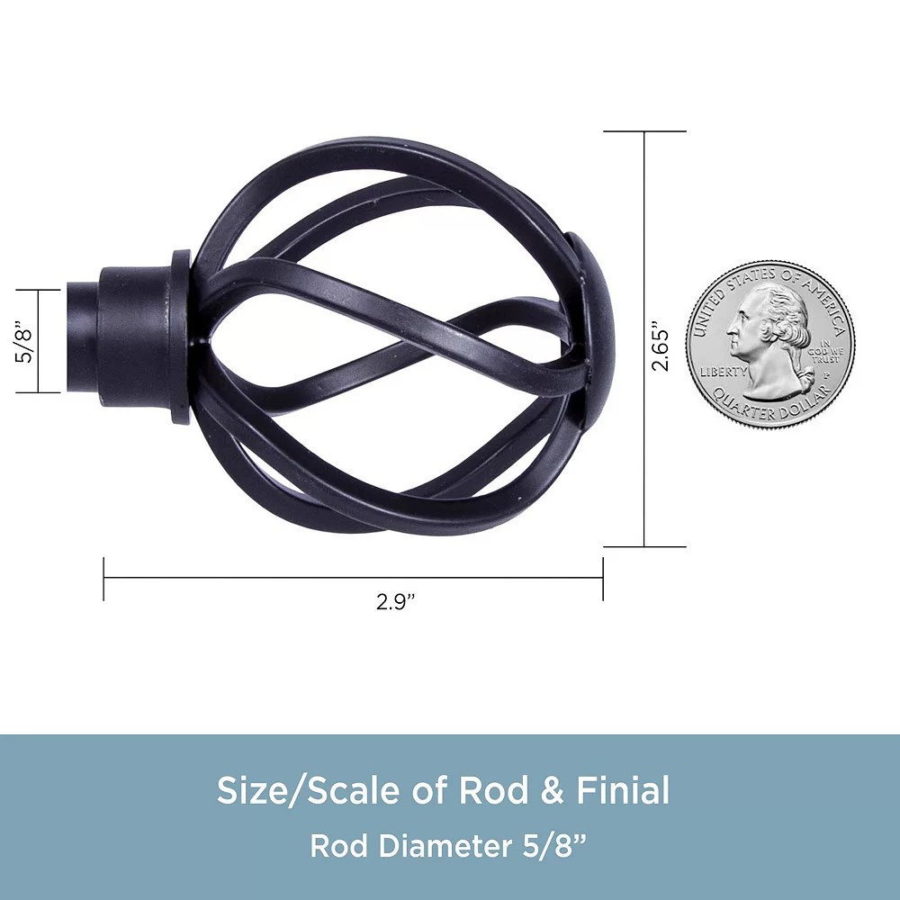 - Telescoping rod adjusts 30-86 inches to fit your window. Brackets project 3.03” with ppen work finial ends. Curtain Rod: 5/8” diameter .