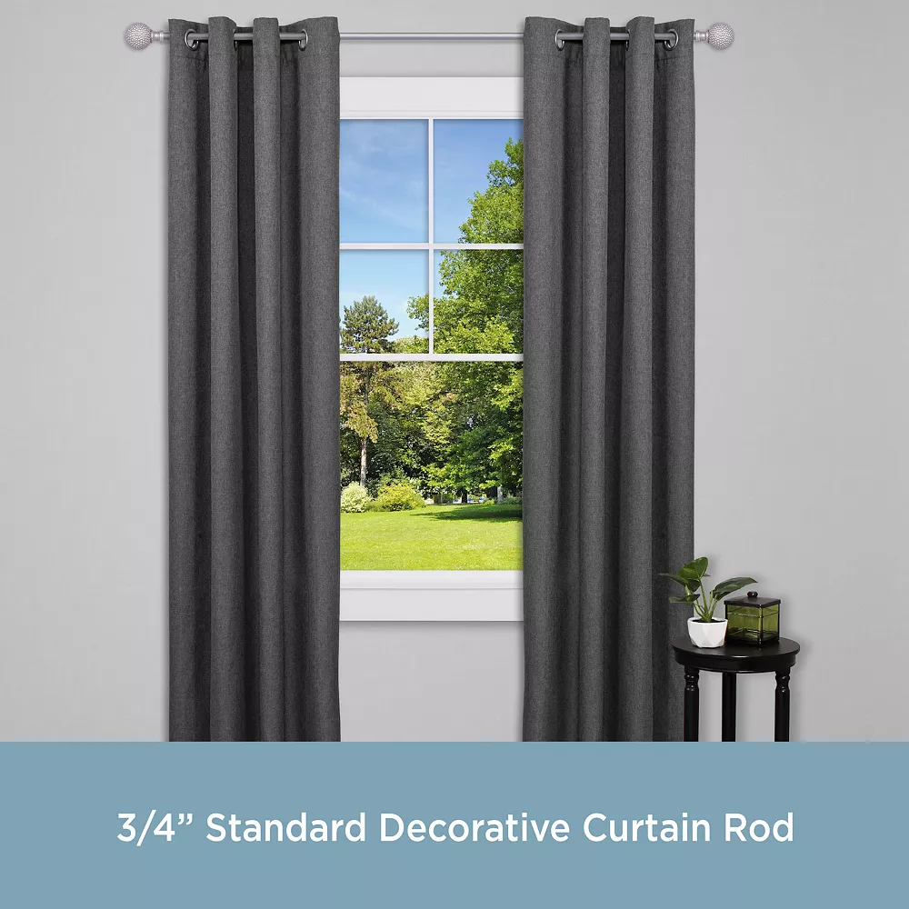 - Included: one telescoping curtain rod with finials, two brackets, screws, drywall anchors, and installation instructions