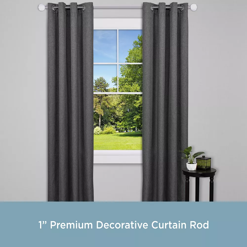 - Included: one telescoping curtain rod with finials, two brackets, screws, drywall anchors, and installation instructions