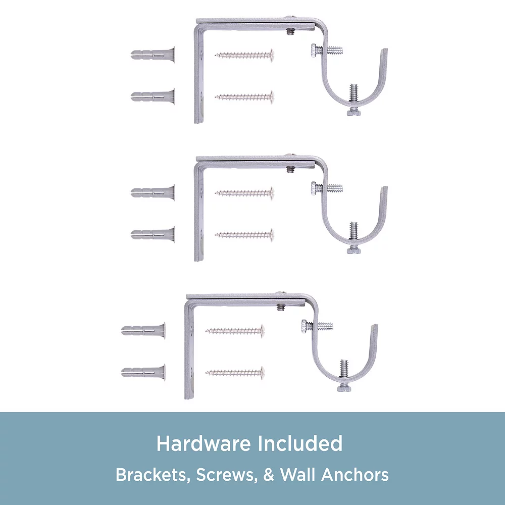 - Included: one telescoping curtain rod with finials, two brackets, screws, drywall anchors, and installation instructions