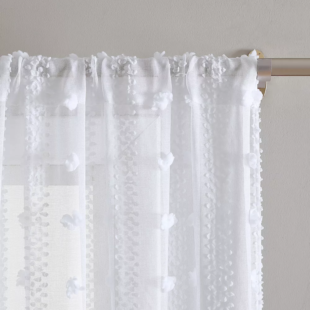 - Drizzle sheer window curtains feature a casual and whimsical raised dash and dot pattern for a fun accent