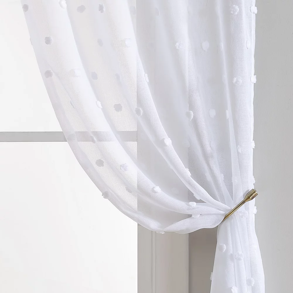 - Penelope sheer window curtains feature a playful raised dot pattern to bring whimsy to any room