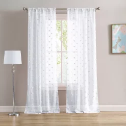- The Penelope sheer window curtains feature a playful raised dot pattern across the curtain panels. Perfect decorative accent to any home décor.