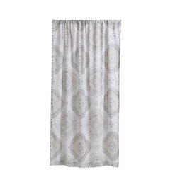 - Soft neutral colors accent detailed medallion print