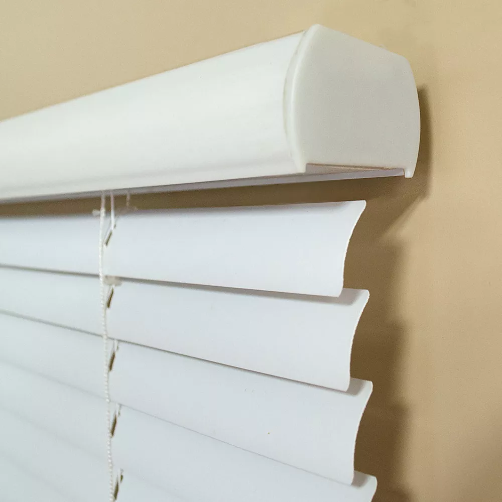- 1-inch, room darkening vinyl slats are the perfect solution for residential or commercial applications (apartments, rental properties, etc). All of the vinyl slats are water and splash resistant. With a built-in color-coordinated valance and tilt wand, you get a high-end look.