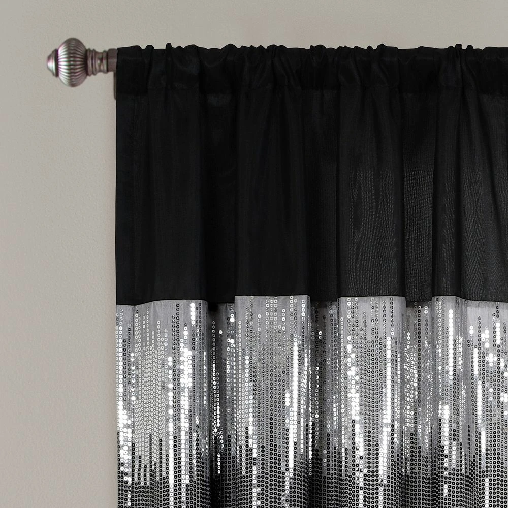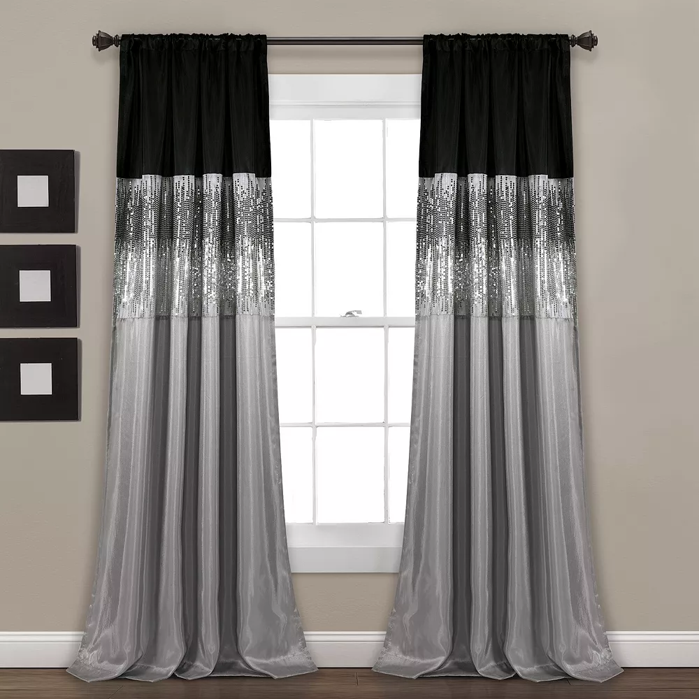 Go high-glamour with Lush Decor. Featuring a pieced design and adorned with sequins, this Night Sky panel shines with modern style. Make a bold statement with this window treatment.