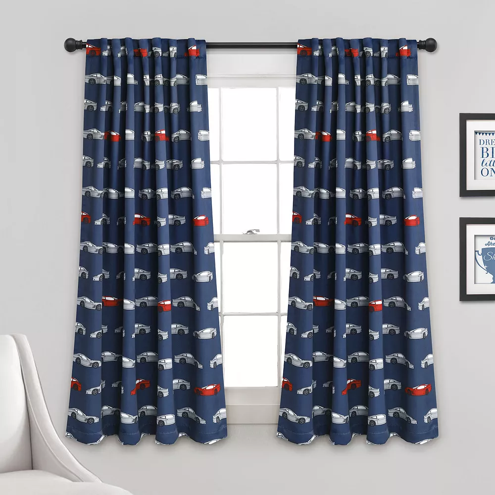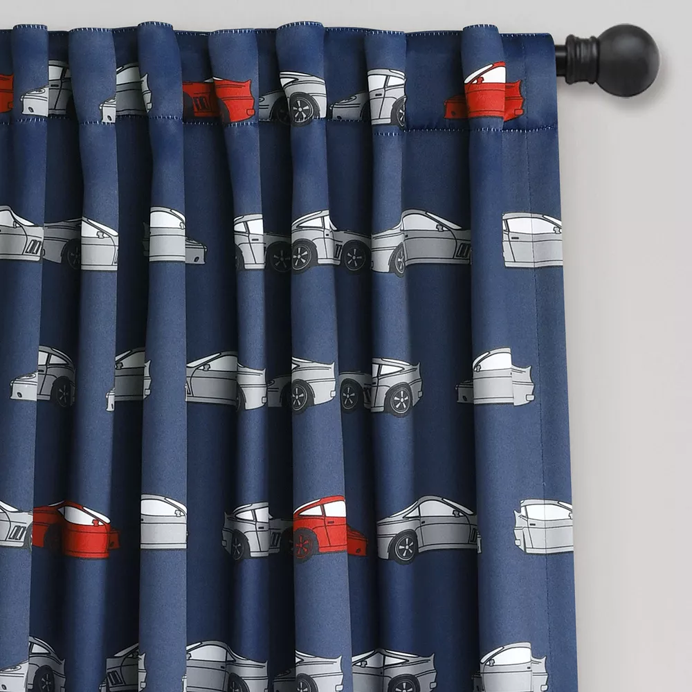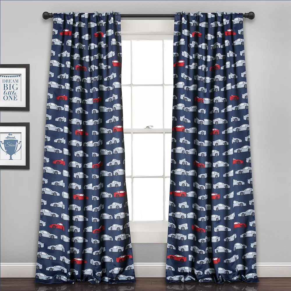 Add an exciting new look to your kid’s room with this race car window curtain from Lush Decor.