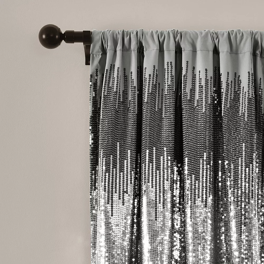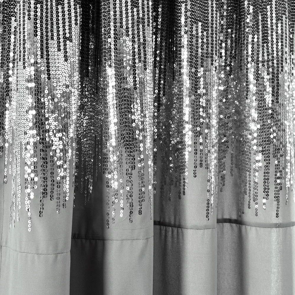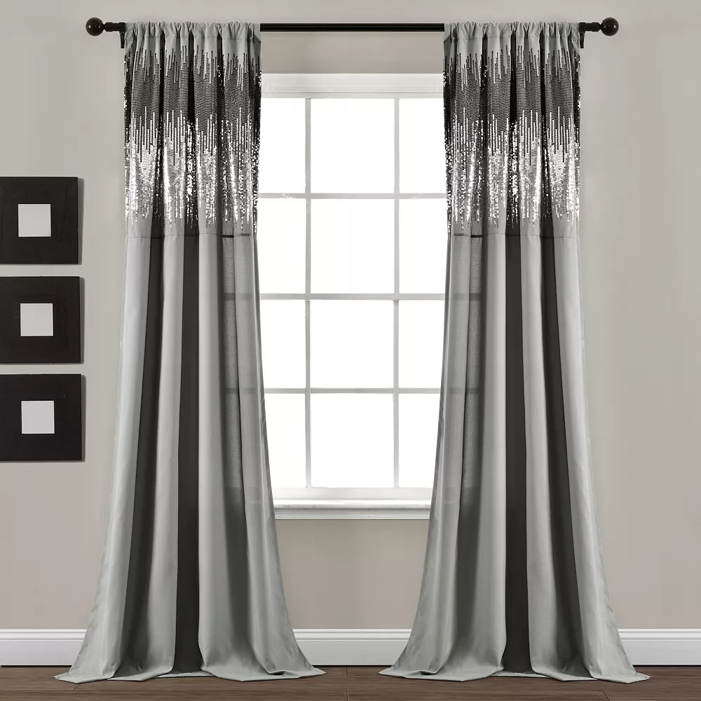 - Add fashion and glamorous style to your home with these shimmering and shining window panels. The top section of the curtain features a modern sequin pattern that will light up the room. This panel set will make an instant statement in your home.