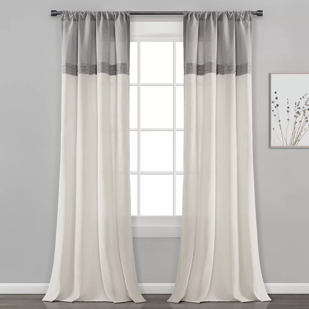 Redefine the look and feel of your window with this Lush Decor Farmhouse Faux Linen Pair of 2 Colorblock Pleated Window Curtain Panels .