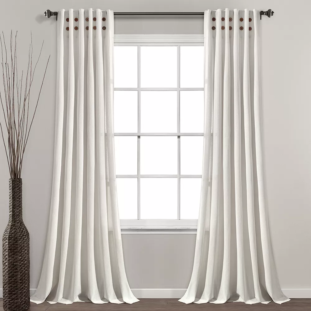- This unique and stylish faux linen window curtain set adds elegance and sophistication to your bedroom, living room, home office, nursery or dining room. We know you’ll love the details of pinched pleats and the buttons at the top. Sold by the pair.