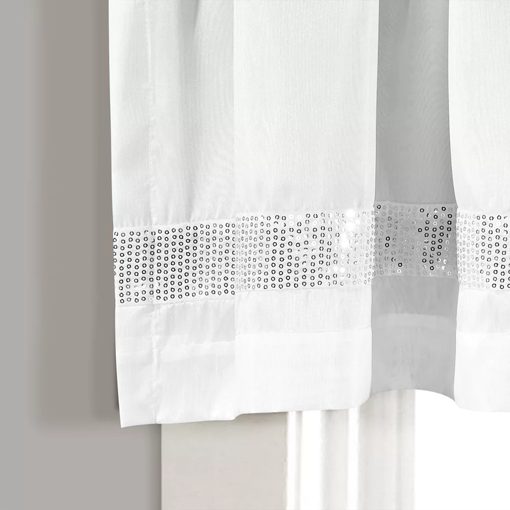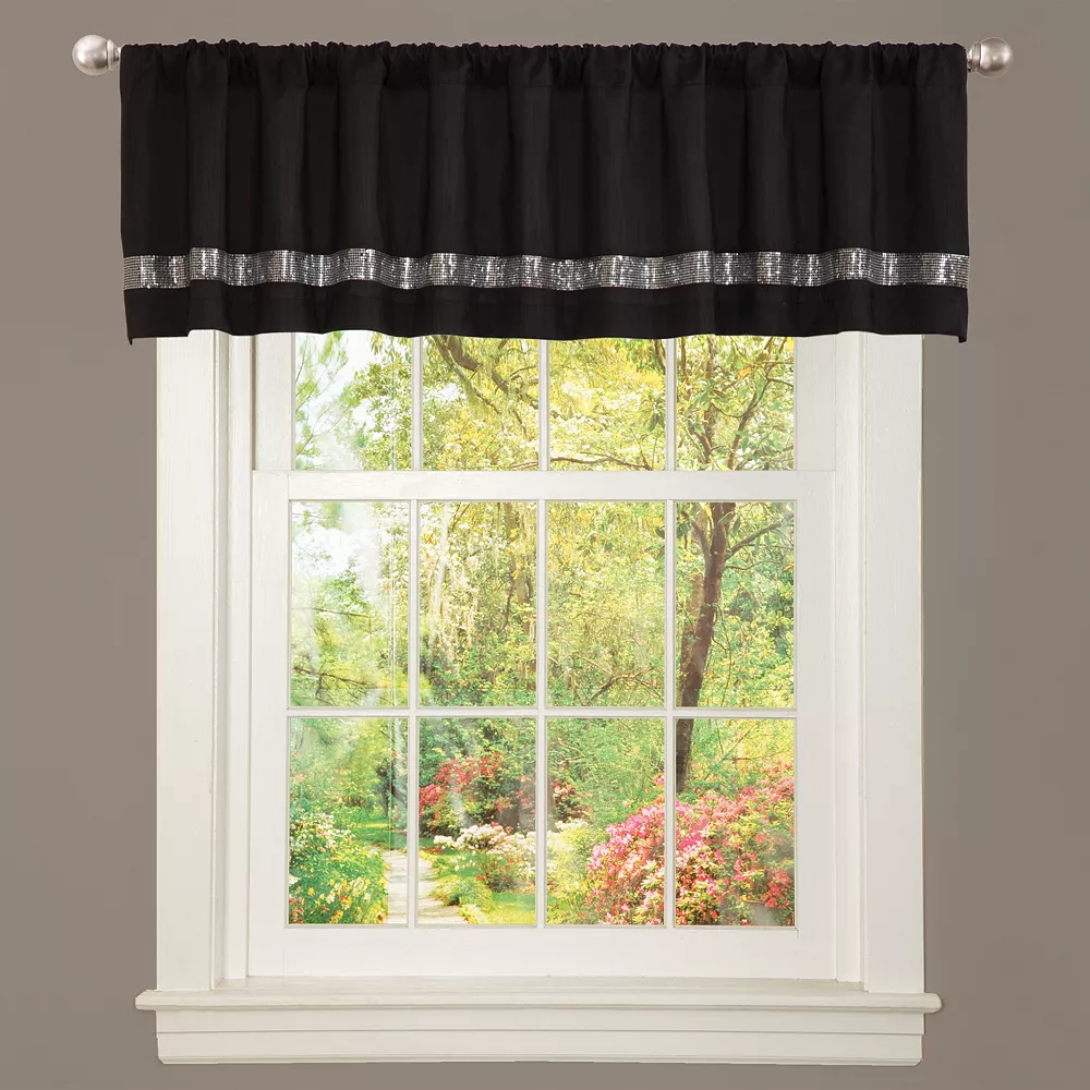 Go high-glamour with Lush Decor. Featuring a pieced design and adorned with sequins, this Night Sky valance shines with modern style. Make a bold statement with this window treatment.