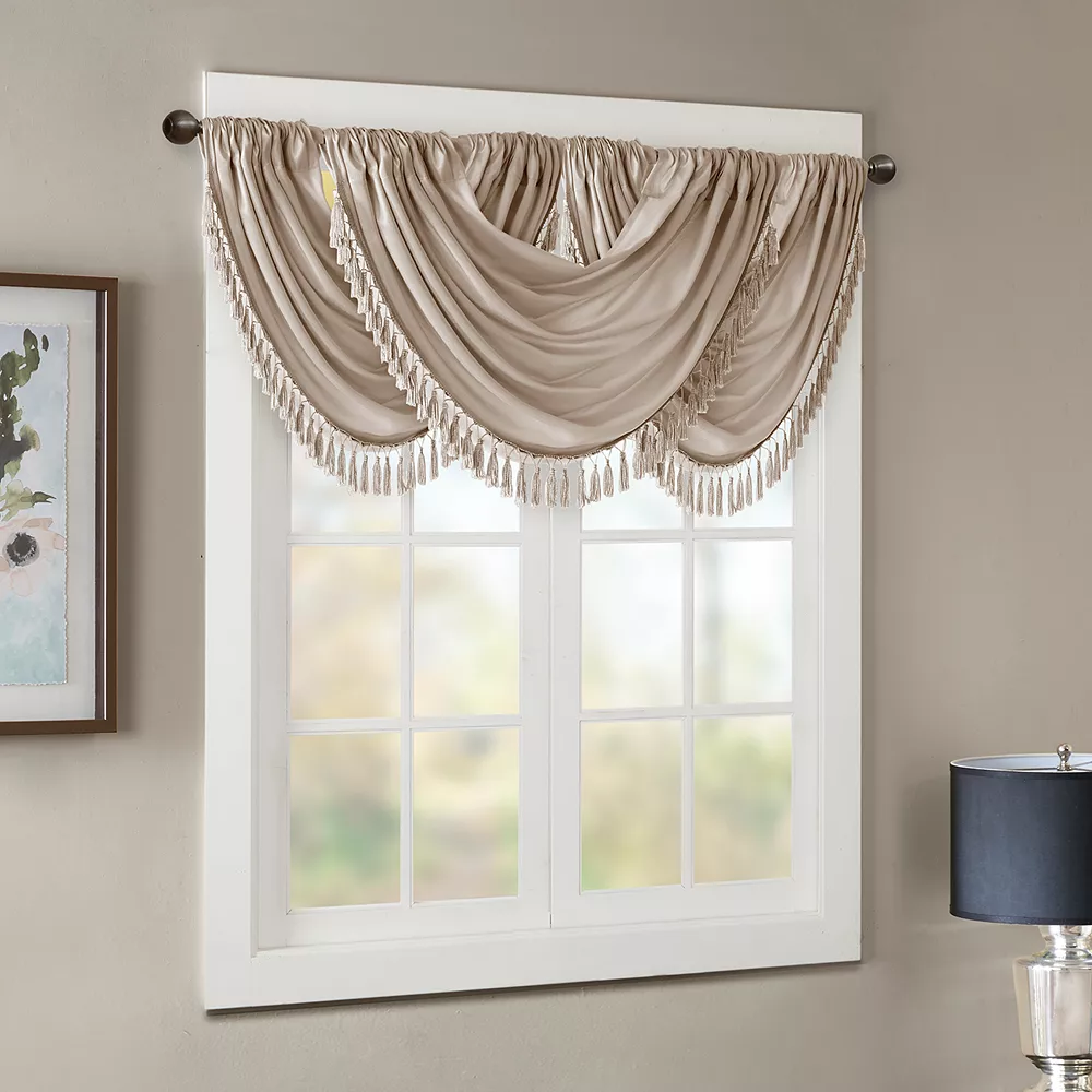 You’ll enjoy the charming look this Madison Park Juline waterfall embellished window valance will bring to your space.