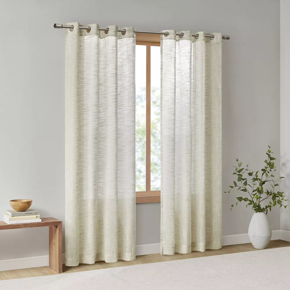 - Create the perfect ambiance in your home with Madison Park Kaisley Yarn Dyed Slub Grommet Top Sheer Window Curtain.