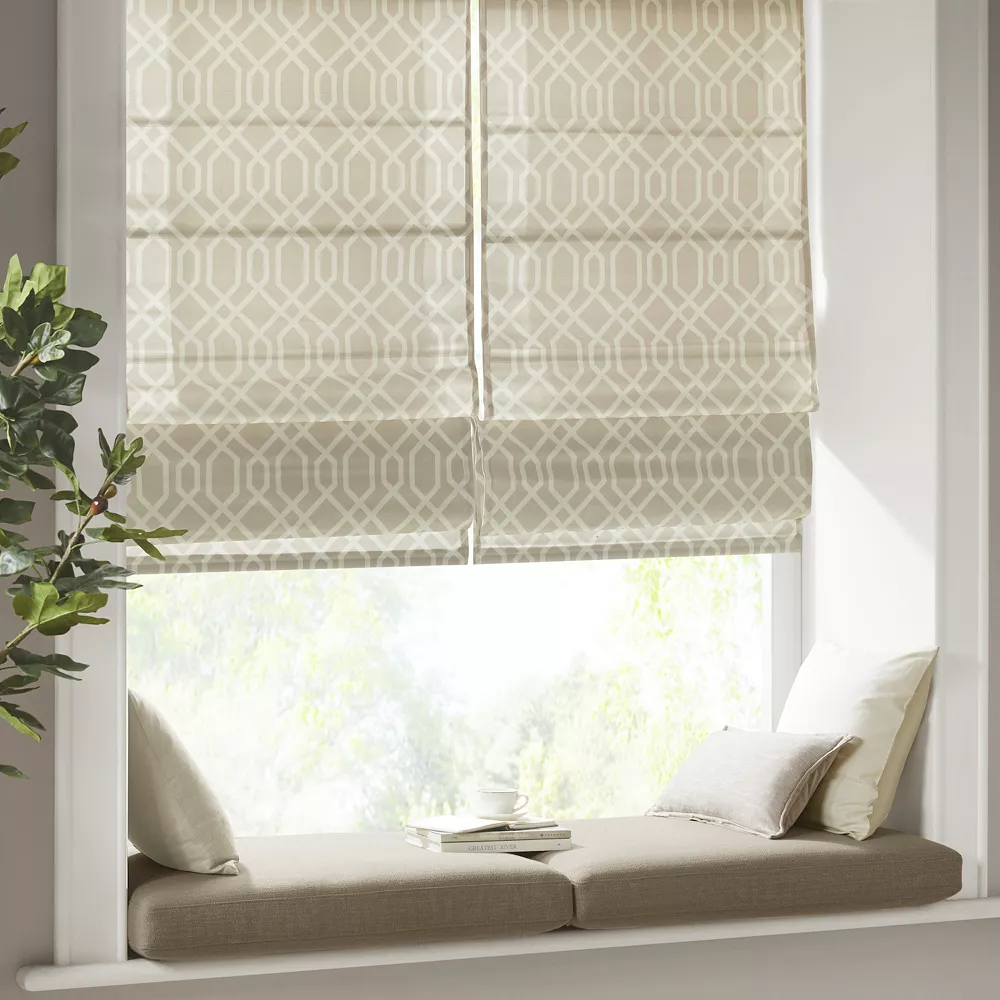 Easily elevate the look of your existing space with this Madison Park Tatum Detachable Printed Ogee Texture Light Filtering Cordless Roman Shade.