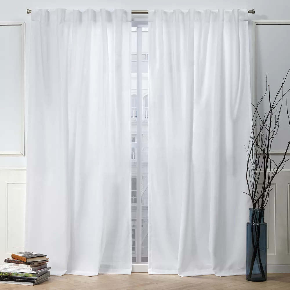 The Nicole Miller NY faux linen slub panels offer a touch of modern elegance and sophistication to your decor.
