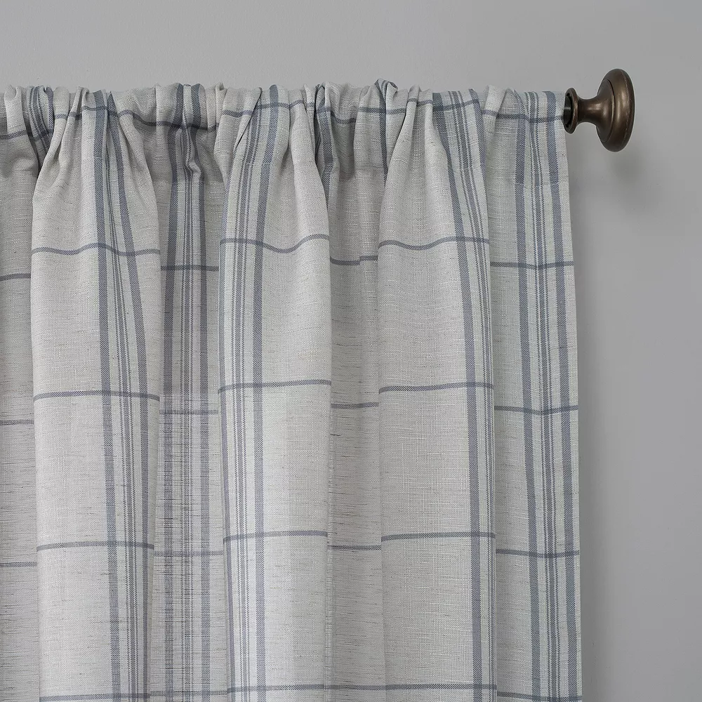 Enhance your privacy with this No. 918 Castille Farmhouse Plaid Linen Semi-Sheer Rod Pocket Curtain Panel.