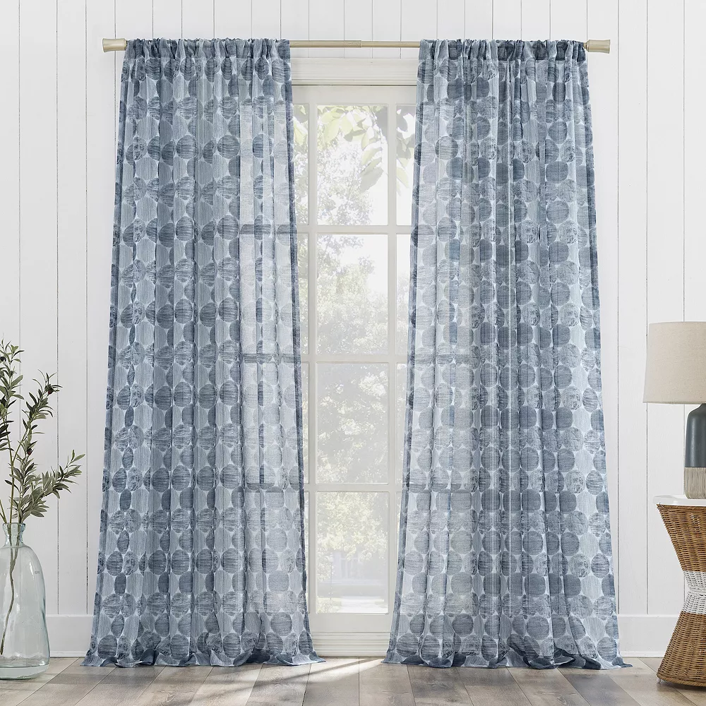 No. 918 Tokai Geometric Print Sheer Rod Pocket Window Curtain Panel