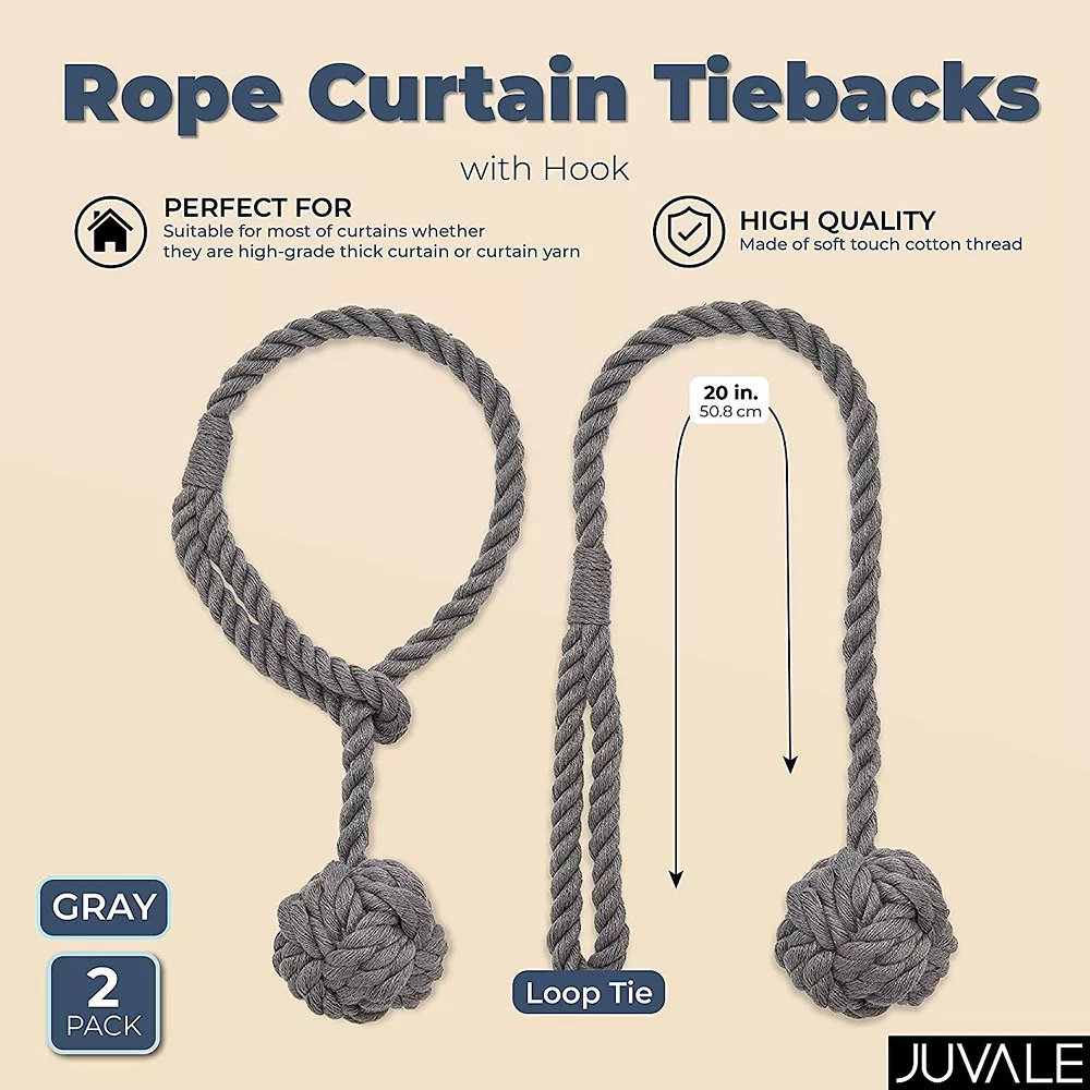 - WHAT’S INCLUDED: Includes 2 rope curtain tiebacks for drapes and 2 metal hooks