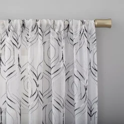 No. 918 Tokai Geometric Print Sheer Rod Pocket Window Curtain Panel