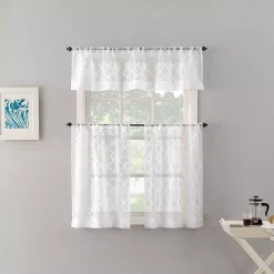 No. 918 Tina Geometric Clipped Jacquard Semi-Sheer Rod Pocket 3-piece Kitchen Curtain Valance & Tiers Set