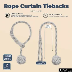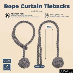 Okuna Outpost Grey Rope Curtain Tiebacks, Holdbacks For Drapes (20 In, 2 Pack)