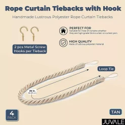 Okuna Outpost Tan Rope Curtain Tiebacks With Hooks, Holdbacks For Drapes (26 In, 2 Pairs)
