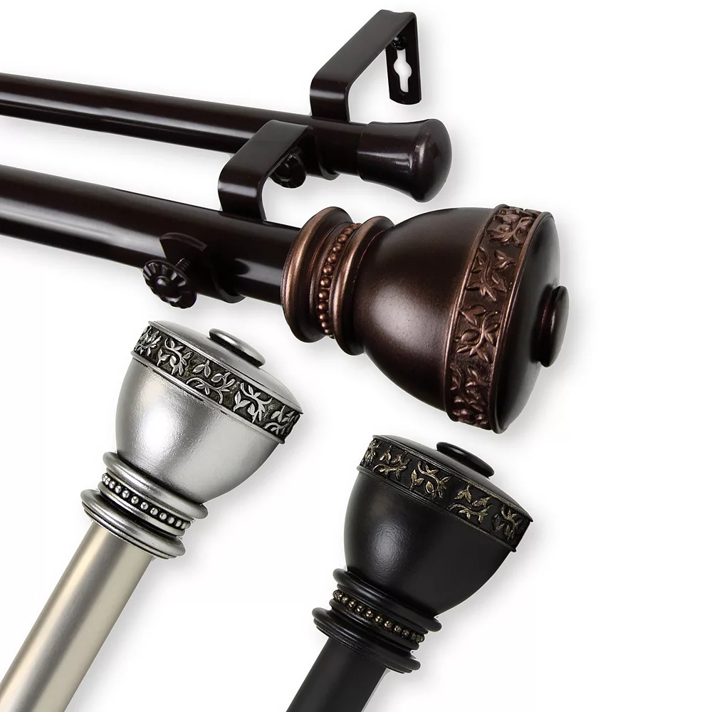 - Includes adjustable 1″ diameter double rod , one pair of finials, three double brackets and mounting hardware