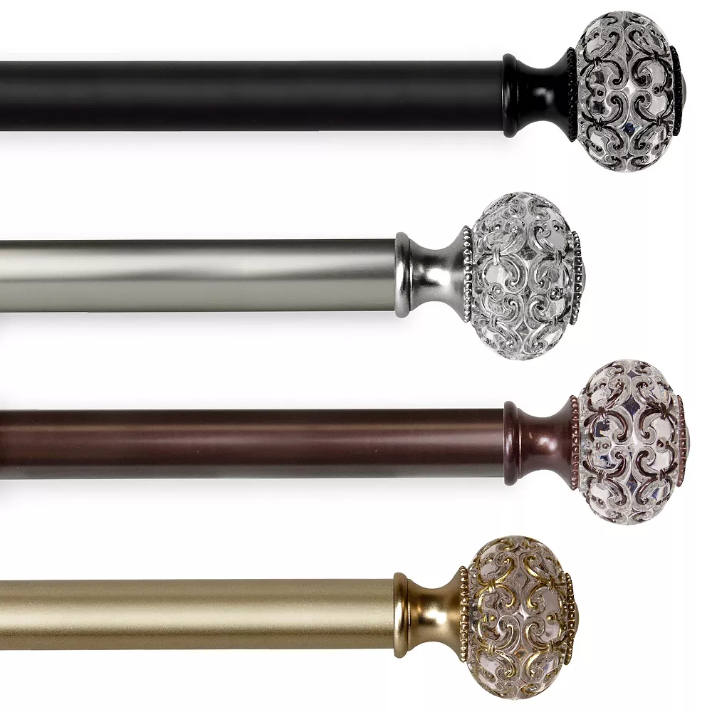 - Includes 1″ diameter single adjustable curtain rod, four brackets, one pair of finials and mounting hardware