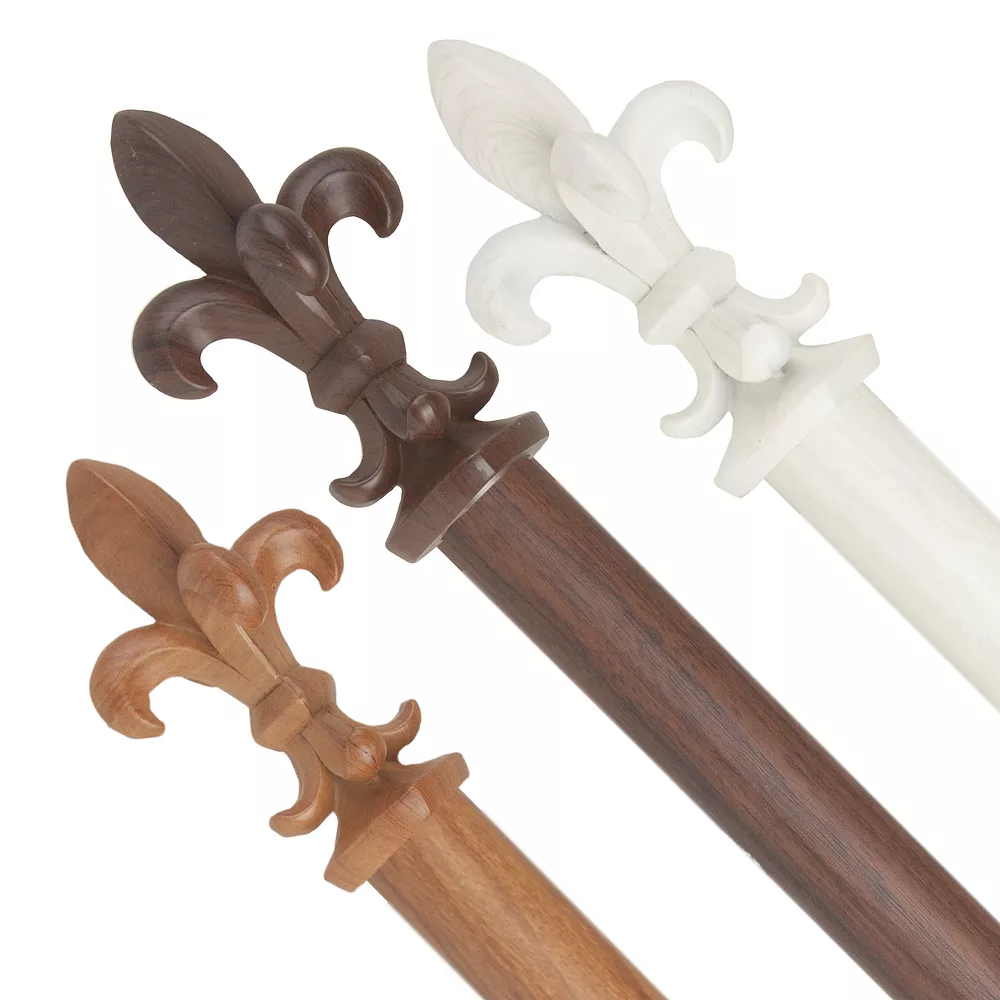 - Includes one 1″ diameter faux wood adjustable pole that extends, three brackets and one pair of finials.
