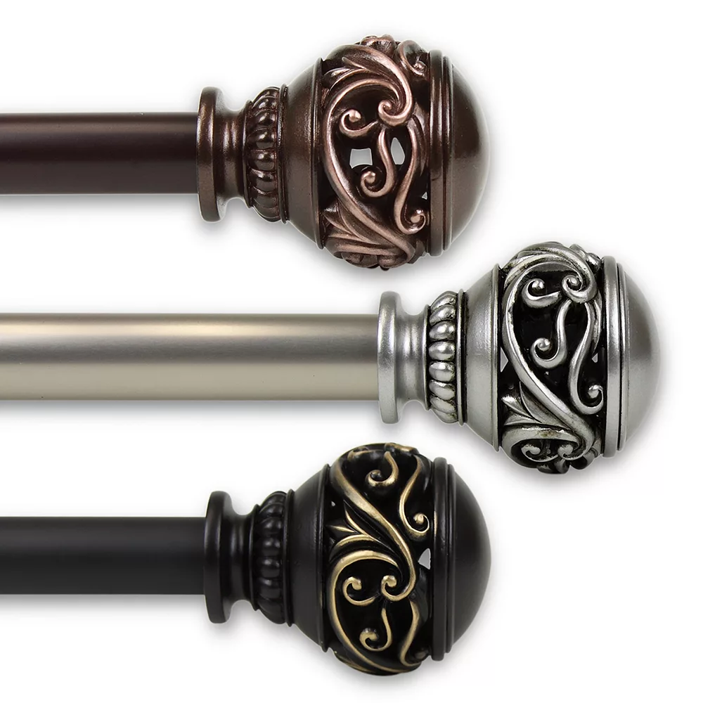 - Includes adjustable 1″ diameter rod, one pair of finial, four single brackets and mounting hardware