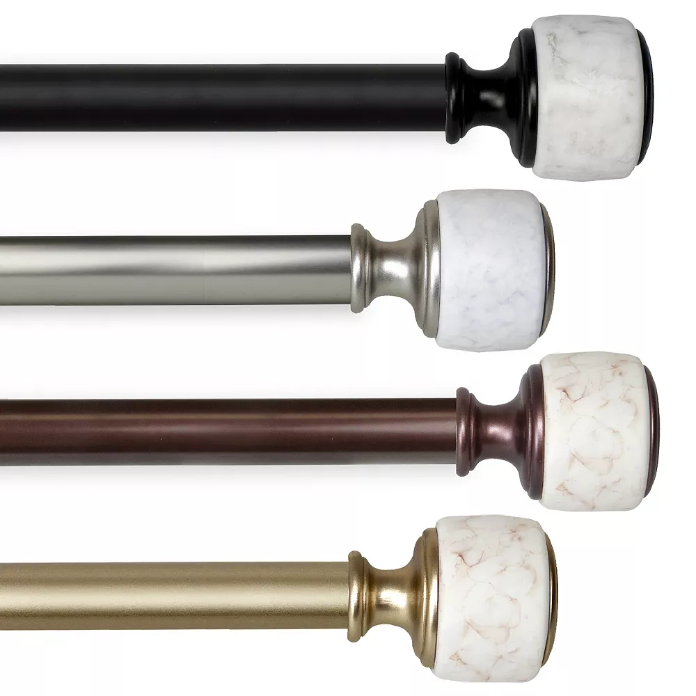 - Includes 1″ diameter single adjustable curtain rod, four brackets, one pair of finials and mounting hardware