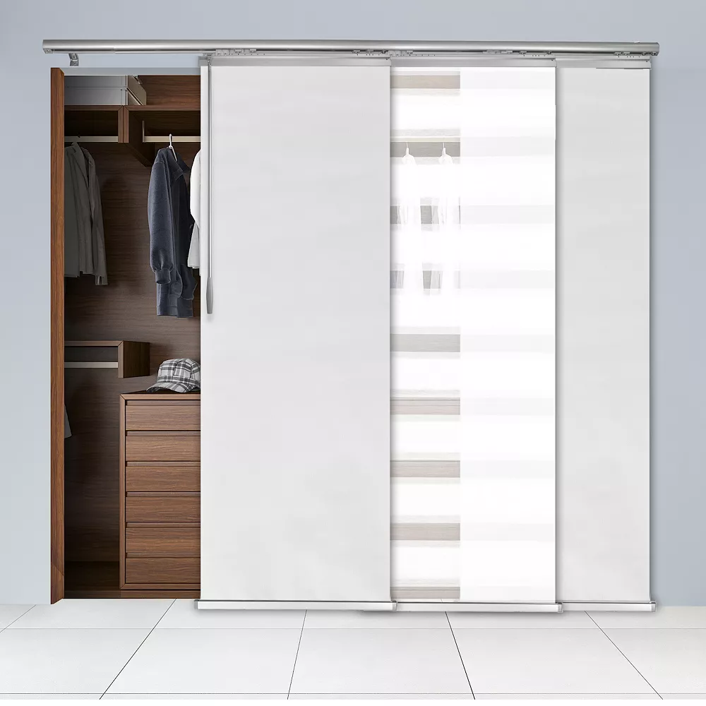 - Patented Sliders Design: Durable and smooth operating, the sliders are made with aluminum and fitted with bearings that allows the sliders to glide across the rail. The sliders are also stacked closer together than conventional panel tracks, which reduces light bleed coming from the gaps between panels