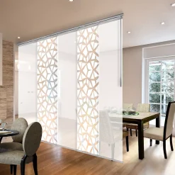 - Patented Sliders Design: Durable and smooth operating, the sliders are made with aluminum and fitted with bearings that allows the sliders to glide across the rail. The sliders are also stacked closer together than conventional panel tracks, which reduces light bleed coming from the gaps between panels