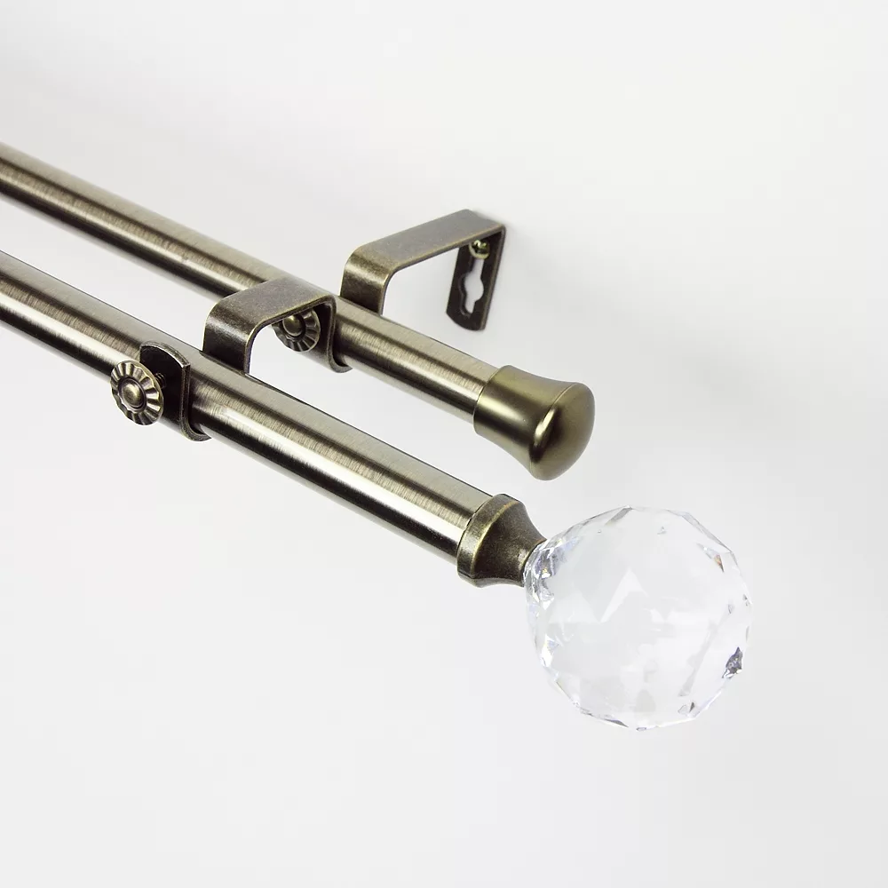 Create an elegant look with this double curtain rod. Its faceted finials bring the perfect hint of sophistication to your panels or valances. Rejuvenate your drapery with our full line of Rod Desyne window hardware at Kohls.com.