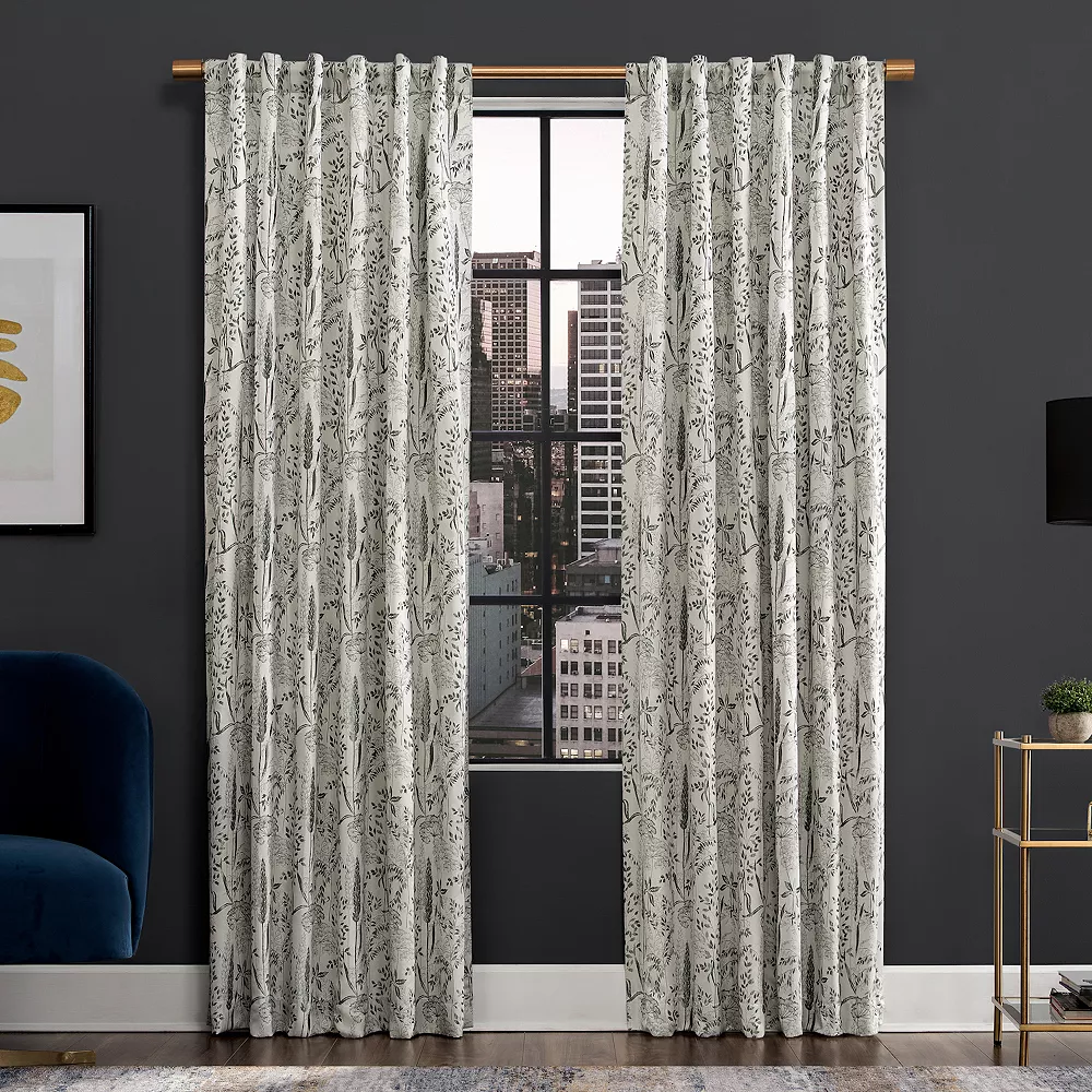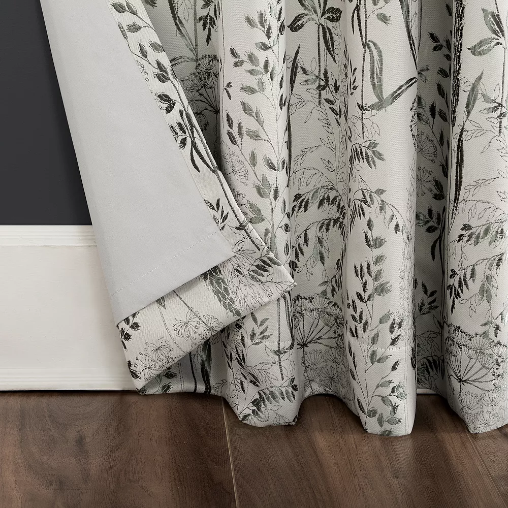 - Shimmering modern floral jacquard adds rich texture and opulence to your space. Total blackout lining blocks out 100% of light. Back tab and rod pocket top treatments fit curtain rods up to 1 ½” in diameter; rod not included.