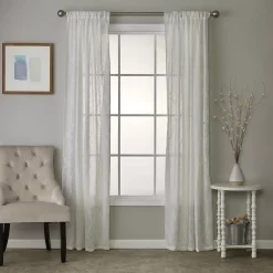 - Lovely in lace. The Isabella Lace window collection adds elegance and beauty to any space. This unlined, semi-sheer woven features a beautiful embroidered lace design. Top pocket fits rods up to 1.5″ in diameter.