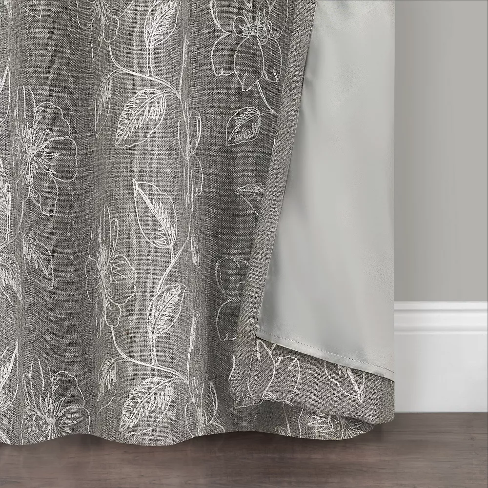 - This textured blackout panel features a beautifully embroidered floral pattern, making it a stylish choice for your window while offering many energy saving benefits.